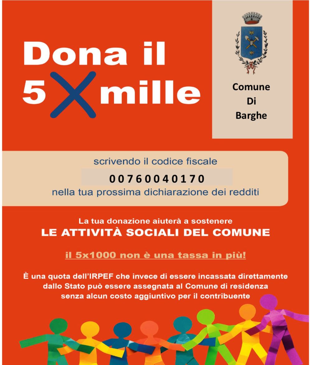 La tua donazione aiuterà a sostenere le attività sociali del Comune.   Per info vedasi locandina