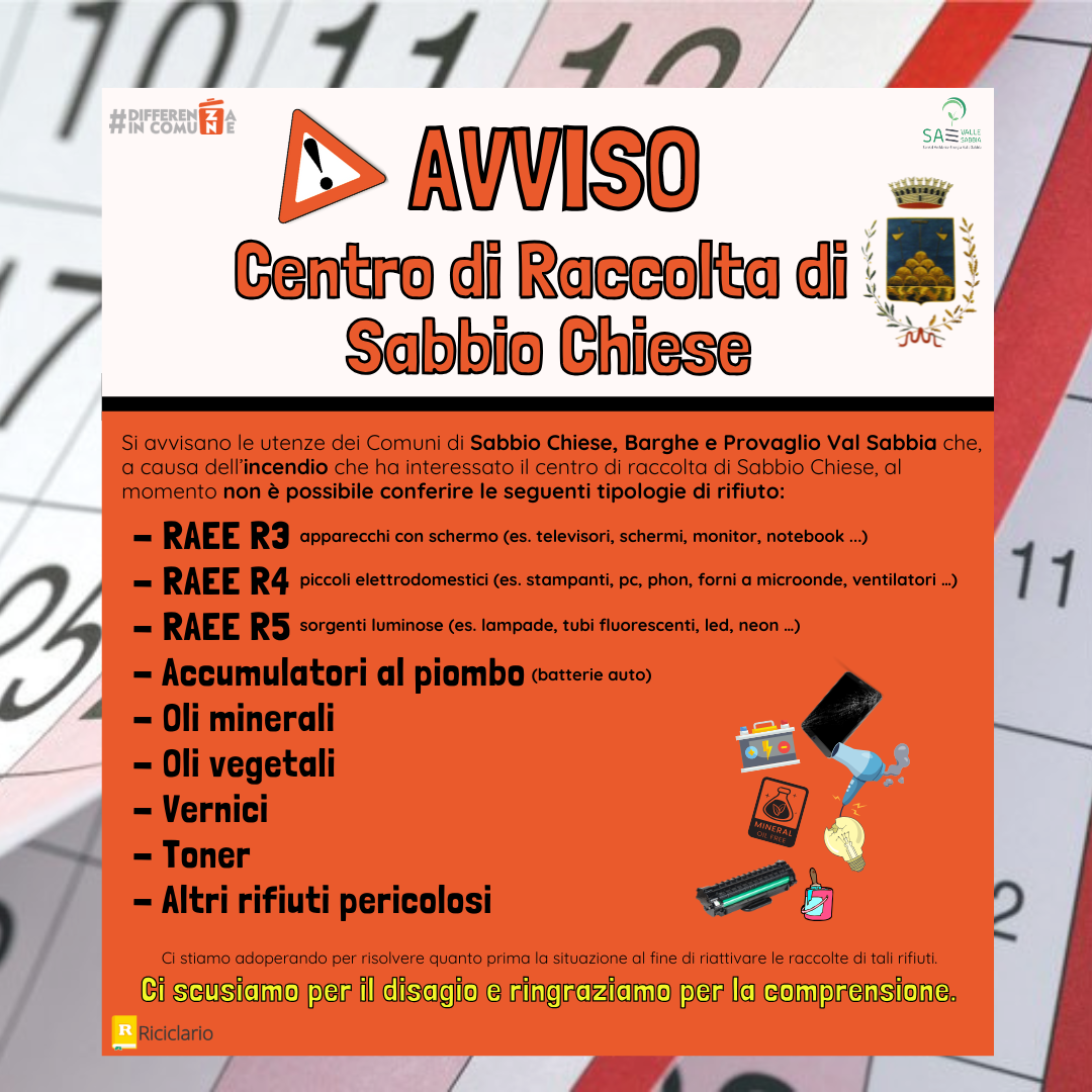 Si avvisano le utenze dei Comuni di Sabbio Chiese, Barghe e Provaglio Val Sabbia che, a causa dell'incendio che ha interessato il centro di...